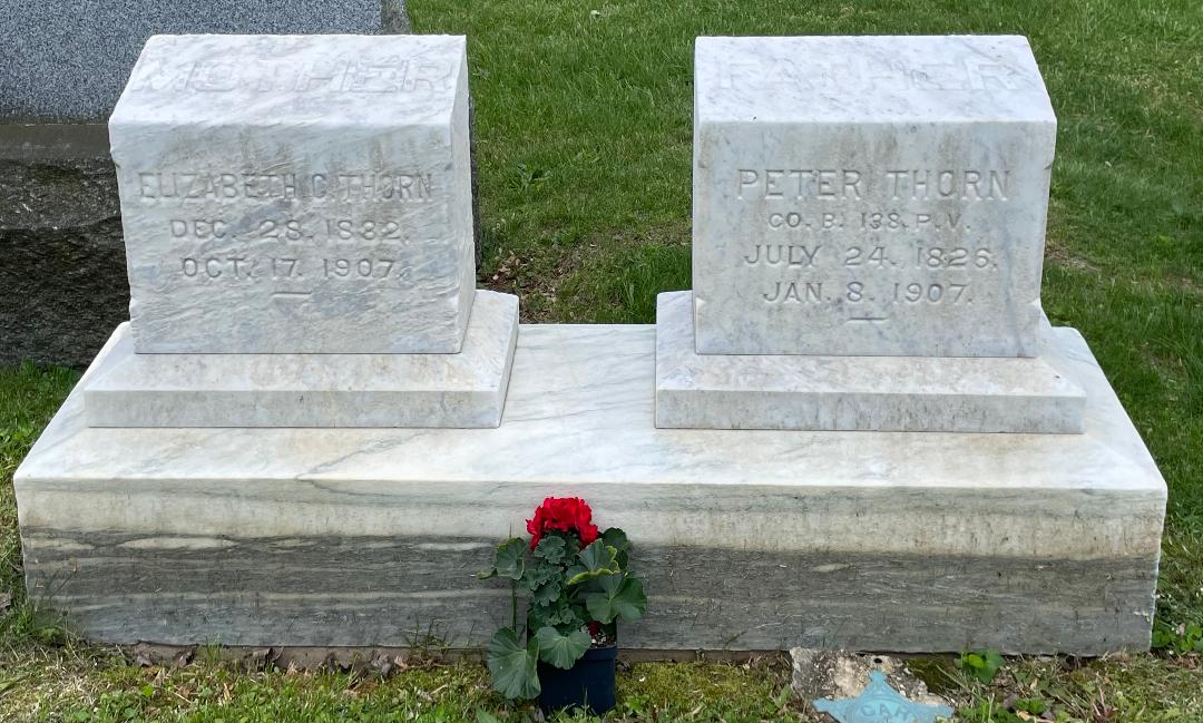 two small children and 6 months pregnant. She lived in the Evergreen Gatehouse and was hostess to three well known figures in command of the Union Army. The hardship she endured and struggles she had trying to keep her family safe while the battle raged, was only amplified upon the ceasing of gunfire. After spending days seeking shelter and food, she herself not eating for days, returned home to find over 20 dead horses surrounding her house and hundreds of wounded soldiers screaming in anguish needing care. In addition, she and her elderly father spent day after day working by hand to dig graves for the dead. Humiliated by the army, having dutiful tasks thrust upon her in threat of being evicted from her home, this young mother and faithful daughter provided for her family and did her patriotic service to the honored dead without complaint. Giving birth to a daughter in October that year, both she and the baby were in very poor health and had a long road ahead of them. Elizabeth persevered and maintained the home and family until her husband’s return from war. Together the Thorn’s moved on with their lives and owned the Battlefield Hotel upon resigning the commission of gatekeeper at Evergreen Cemetery.