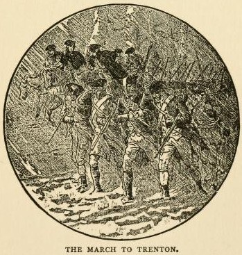 On Christmas Eve, when all the Christian world was feasting and rejoicing, and while the British were enjoying themselves in their comfortable quarters, Washington set out. With twenty-four hundred men he crossed the Delaware through the floating ice, his boats managed and rowed by the sturdy fishermen of Marblehead from Glover’s regiment. The crossing was successful, and he landed about nine miles from Trenton. It was bitter cold, and the sleet and snow drove sharply in the faces of the troops. Sullivan, marching by the river, sent word that the arms of his soldiers were wet. ” Tell your general,” was Washington’s reply to the message, ” to use the bayonet, for the town must be taken.”