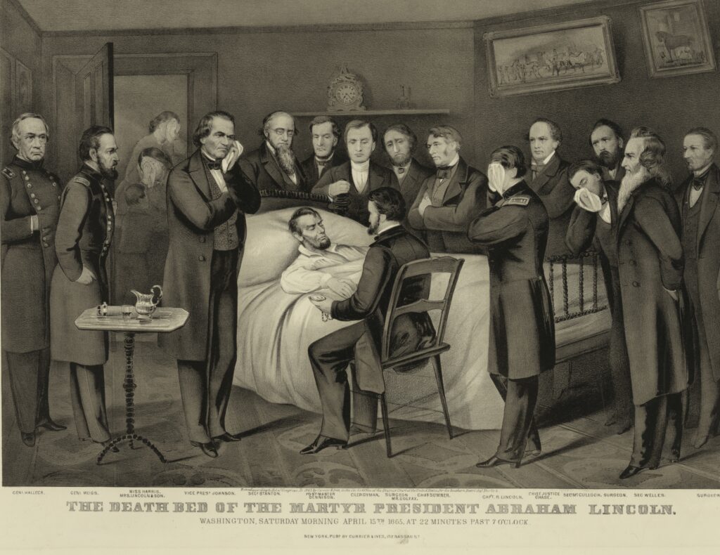 Abraham Lincoln took his final breath at 7:22 AM on April 15, 1865, in a boarding house bedroom that was so small the 6’4″ President had to be laid diagonally across the bed.