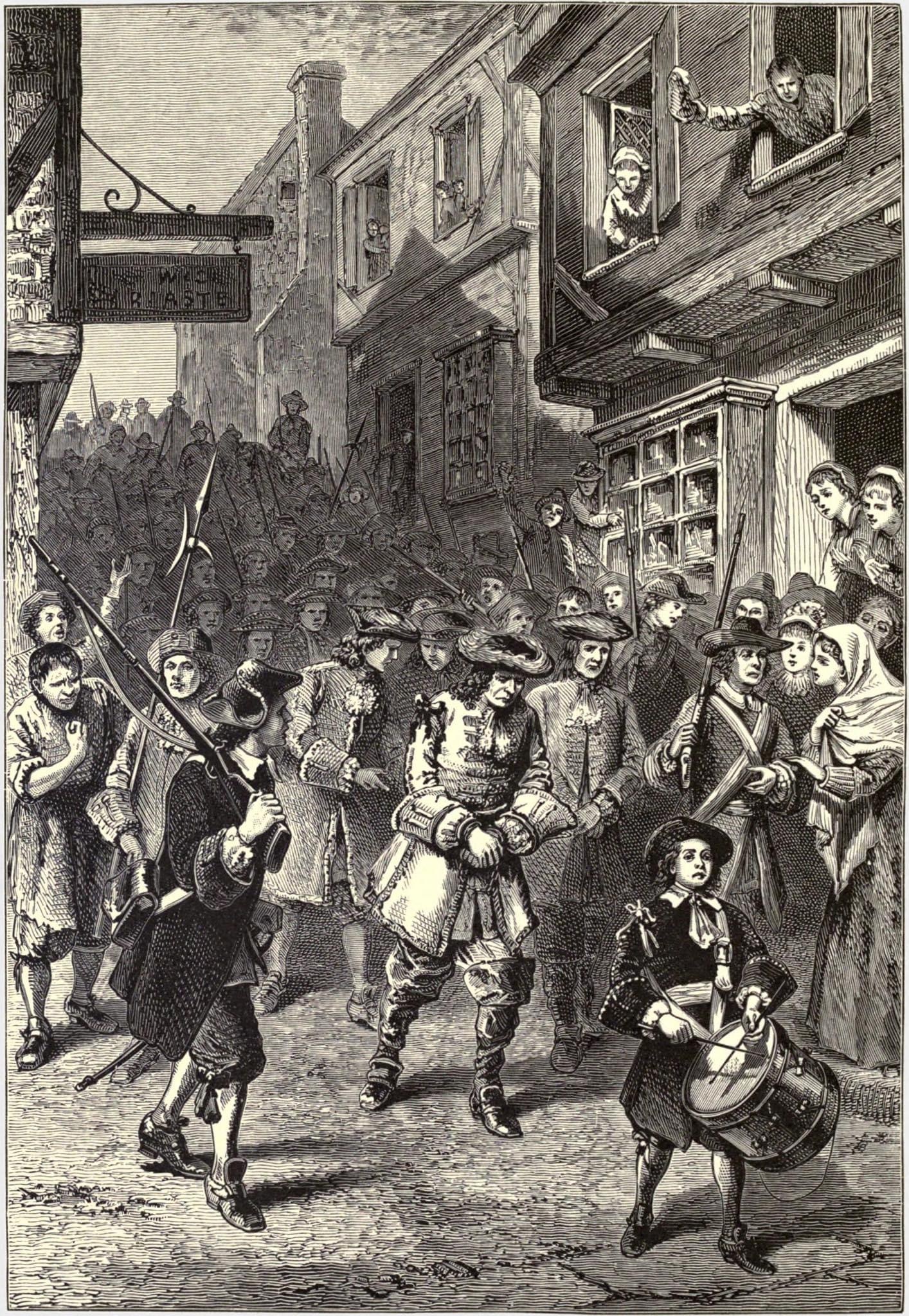 On April 18, 1689, the Governor of the Dominion of New England, Sir Edmund Andros, was arrested and imprisoned by an angry mob of Bostonians when they became aware that King James II was deposed in England.
