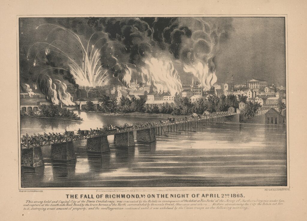 The Fall of Richmond, Va. on the Night of April 2, 1865. Image via Wikimedia Commons, public domain