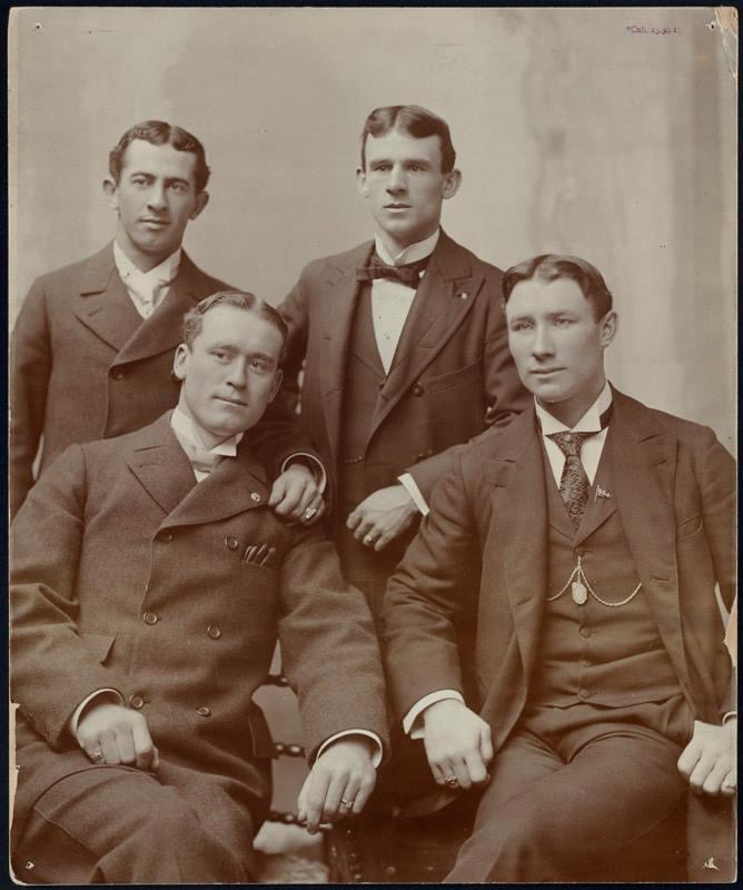 On today’s date April 2, 1869: American baseball player, coach and manager Hughie Jennings was born in Pittston, Pennsylvania. Hughie, while playing for the Baltimore Orioles during the 1896 season, was hit by 51 pitches – the most times a batter was hit by pitches during a single season. Photo: Hughie Jennings (seated right) next to fellow star Baltimore Orioles: Joe Kelly (seated left), outfielder Wee Willie Keeler (standing left) and third baseman John T. McGraw (standing right): c. 1895 by BPL CC BY 2.0 via Wikimedia Commons