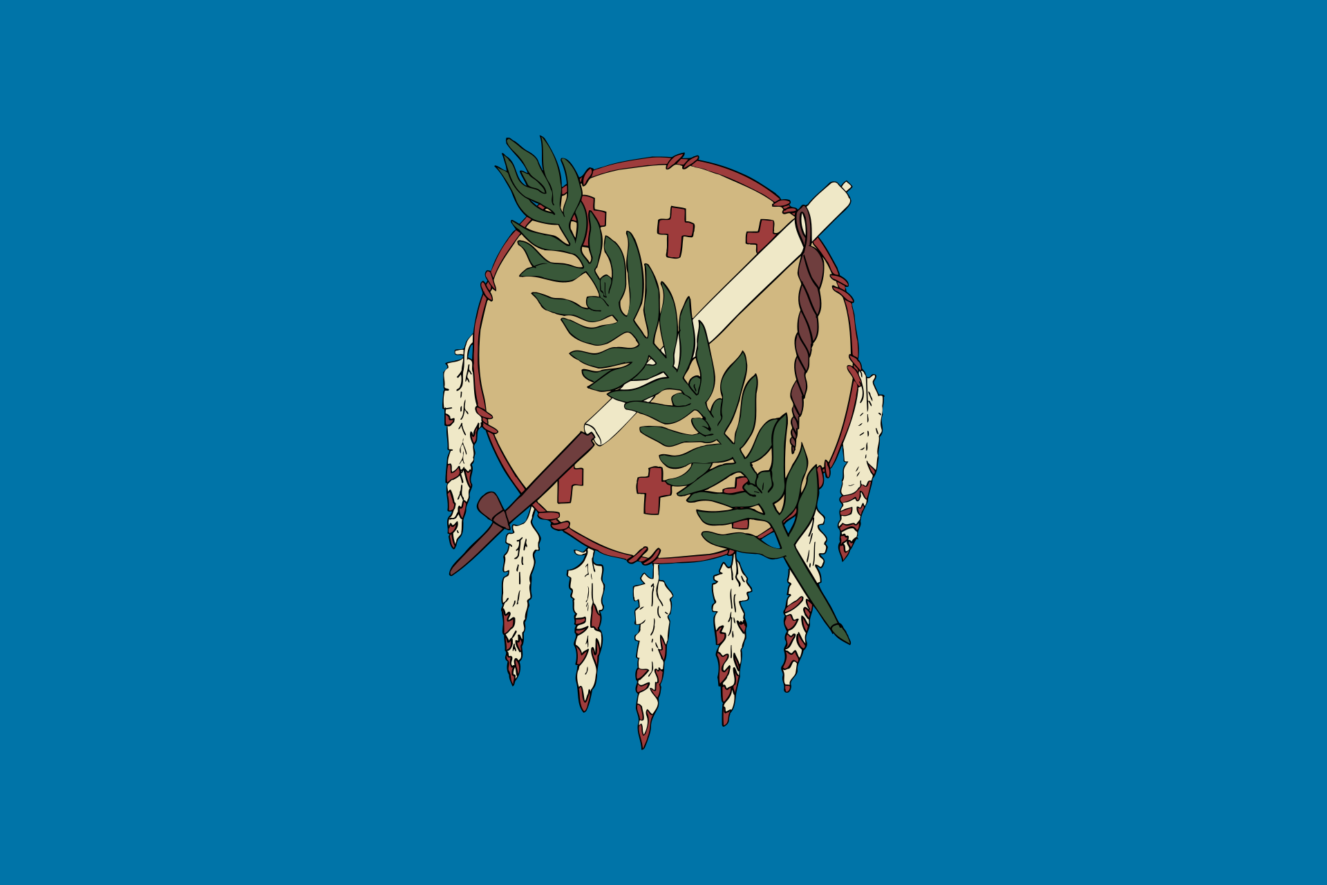 On April 2, 1925, a new design for the Oklahoma state flag was officially adopted. Created by Louise Funk Fluke, it features the Osage Nation buffalo-skin shield, crossed with a peace pipe and an olive branch, symbolizing peace and reflecting the state’s Native American heritage. In 1941, the word “Oklahoma” was added at the bottom to enhance the flag’s recognition. Image via Wikimedia Commons, public domain