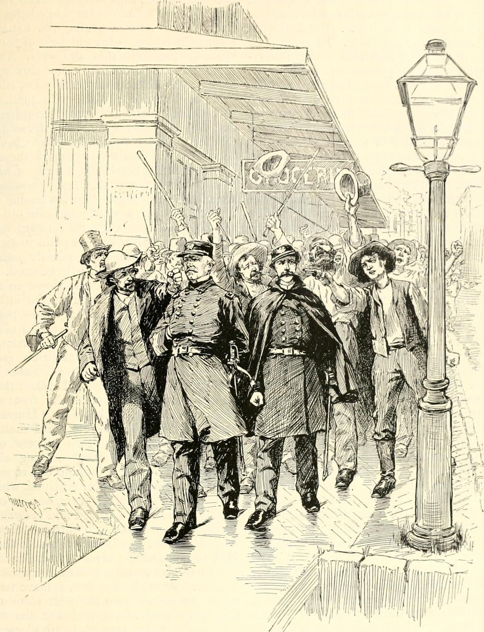 Union Captain Theodorus Bailey with Lieutenant Perkins walking through the streets of New Orleans among angry mobs to demand the city’s surrender.