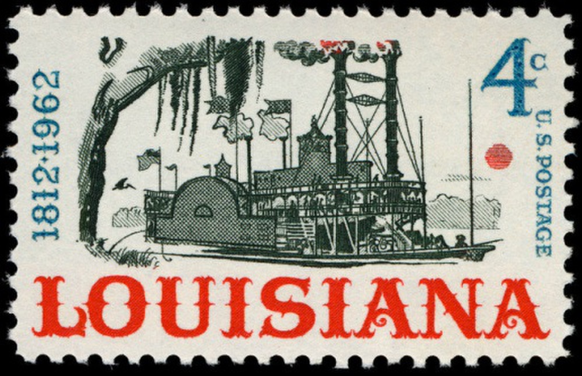 A U.S. stamp from April 30, 1962 commemorating the 150th Anniversary of Louisiana’s statehood.