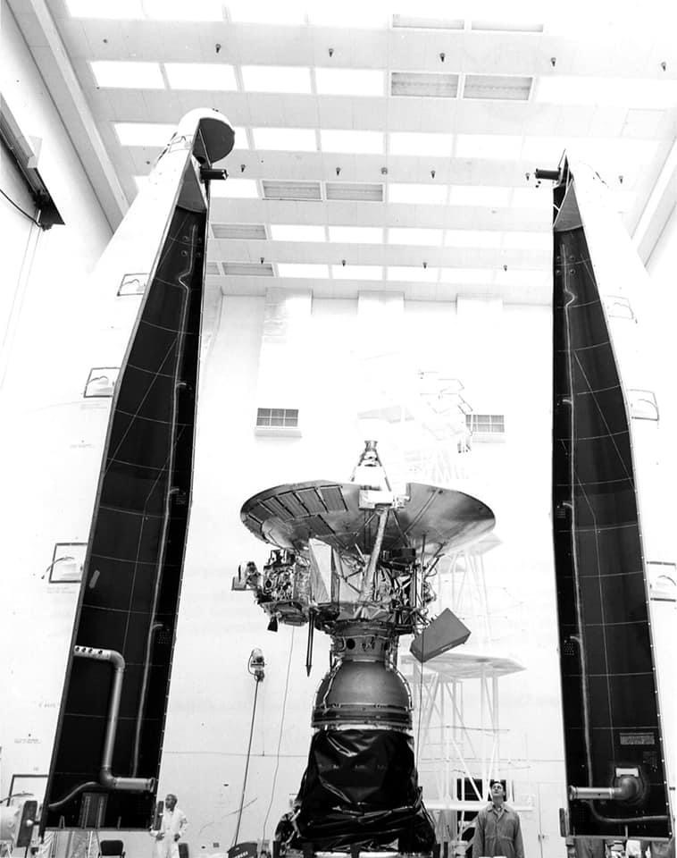 Image of Pioneer 11 before launch in 1973 via Wikimedia Commons, public domain