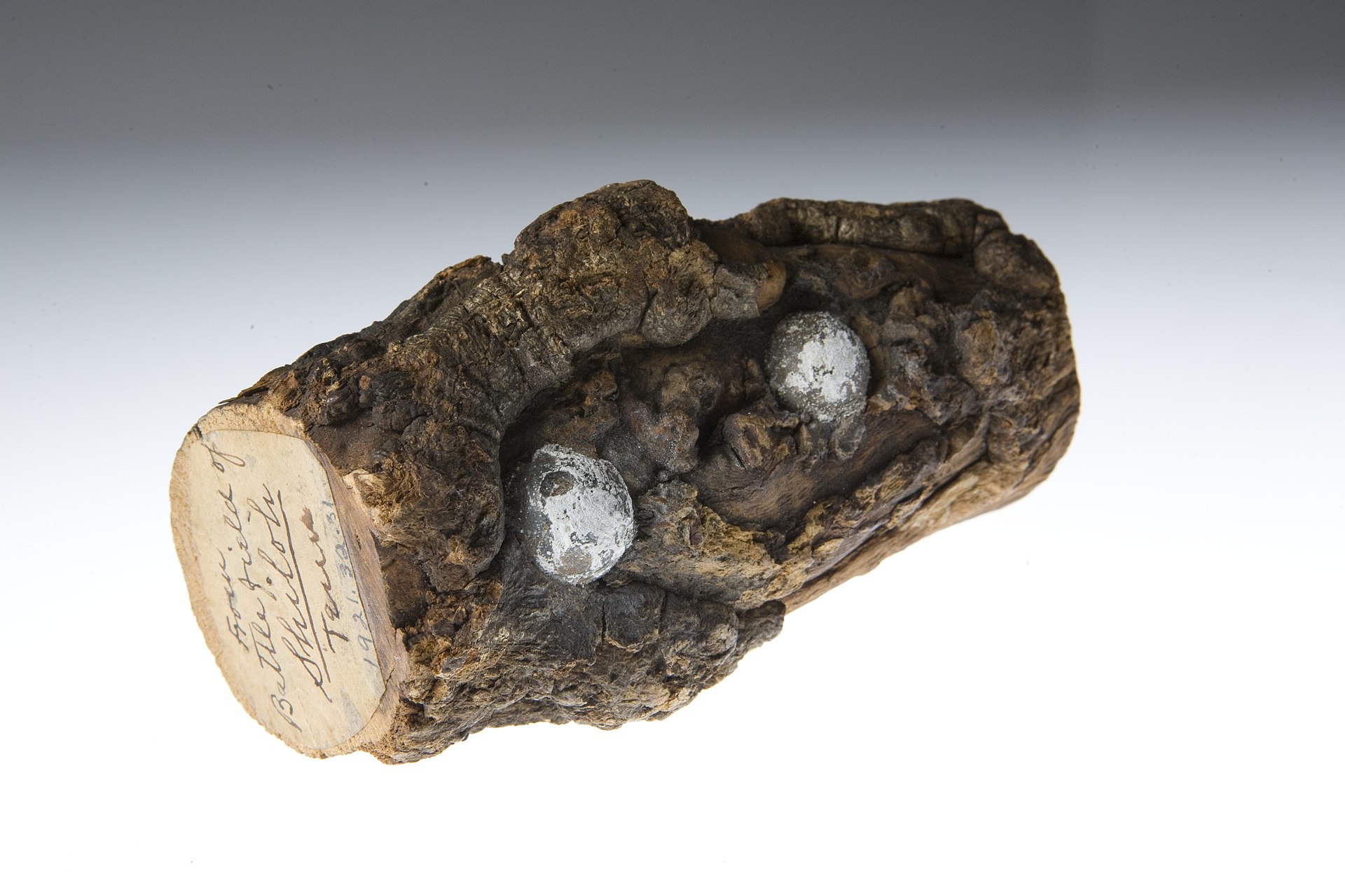 Image: Lead Balls Embedded in Section of Tree Branch from Shiloh Battlefield