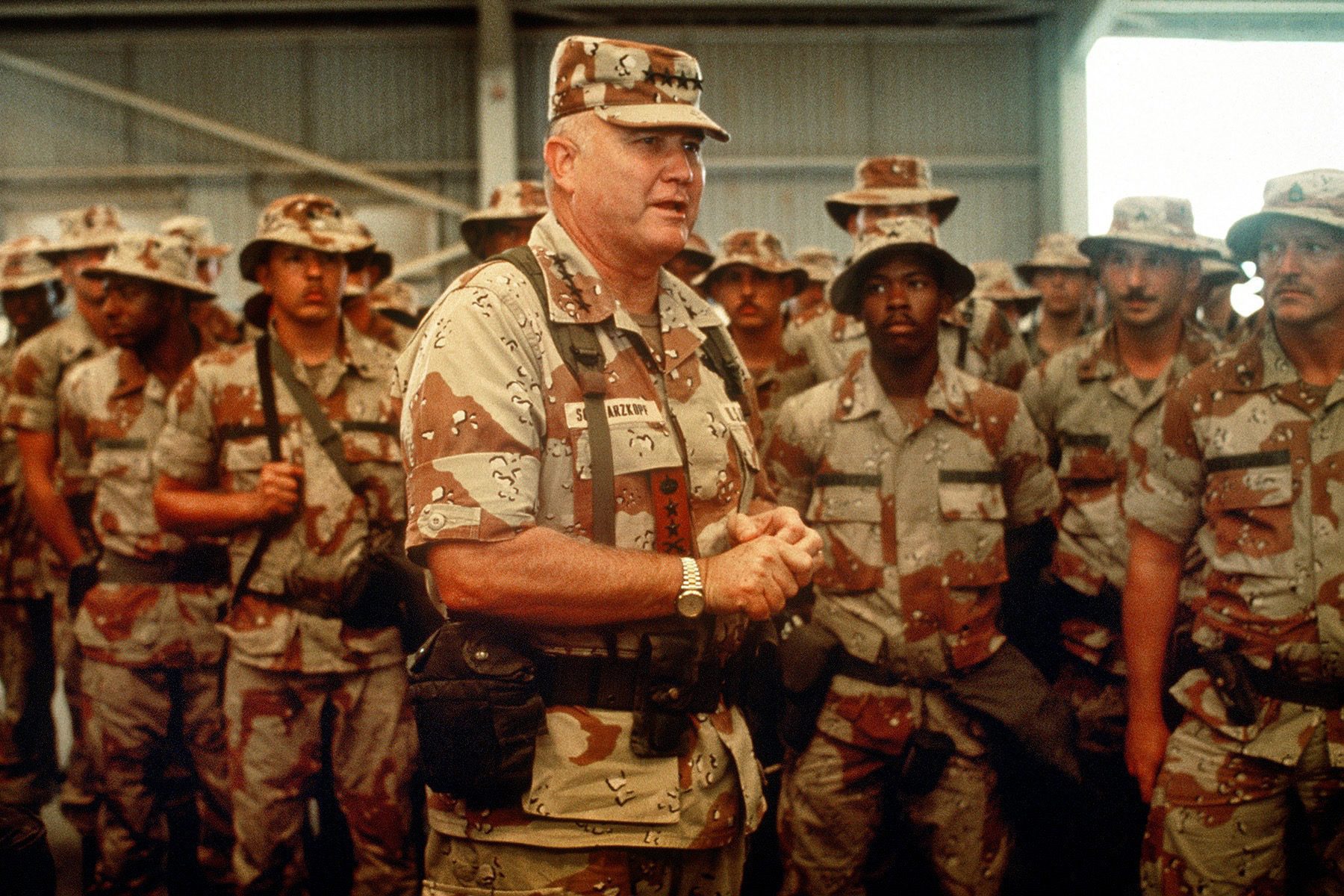Born August 22, 1934 General Norman Schwarzkopf, Jr. was a West Point graduate, a combat veteran of Vietnam, and involved in the Grenada Invasion. In conjunction with coalition forces in 1991 Schwarzkopf successfully led Operation Desert Storm in the Gulf War.