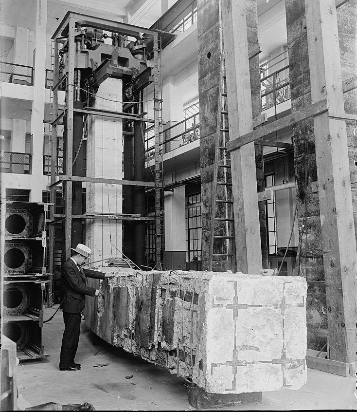 Bureau of Standards, testing concrete beams on August 24, 1929