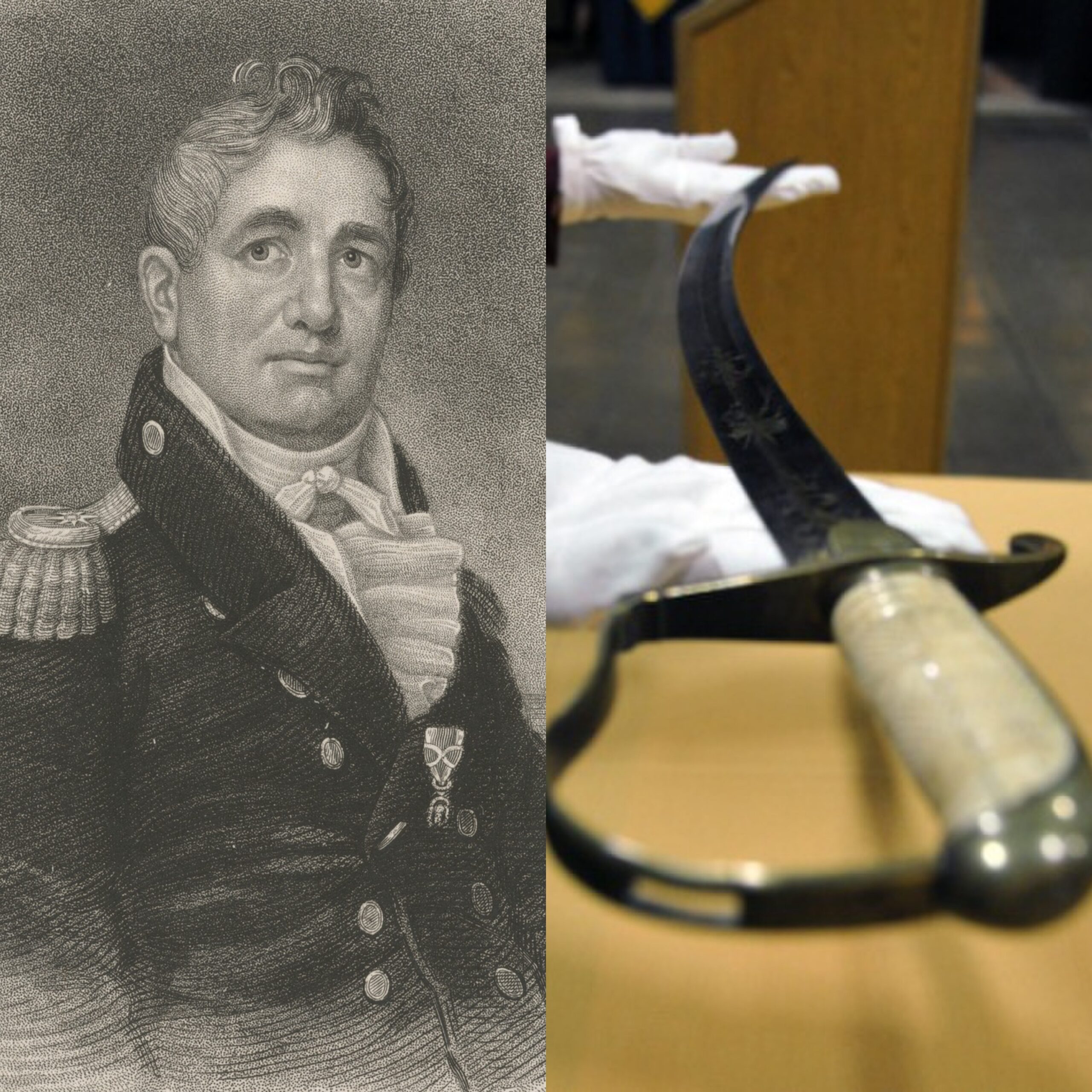 The sword that you see on the right belonged to Joshua Barney and became a possession of the British at Bladensburg.