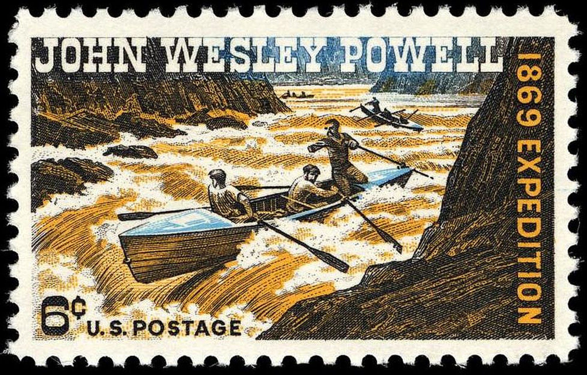 Image: Commemorative stamp from 1969 with art depicting John Wesley Powell’s Expedition