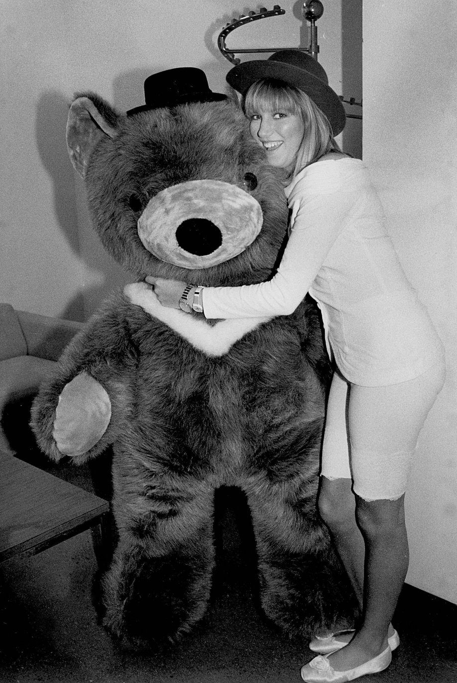 Image of Debbie with a big teddy bear that she received from Regis Philbin & Kathie Lee on her 18th birthday in 1988