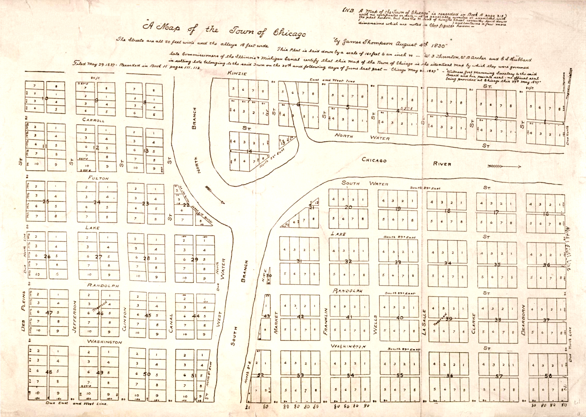 This first grid layout of the City of Chicago was created on August 4, 1830 by surveyor James Thompson.