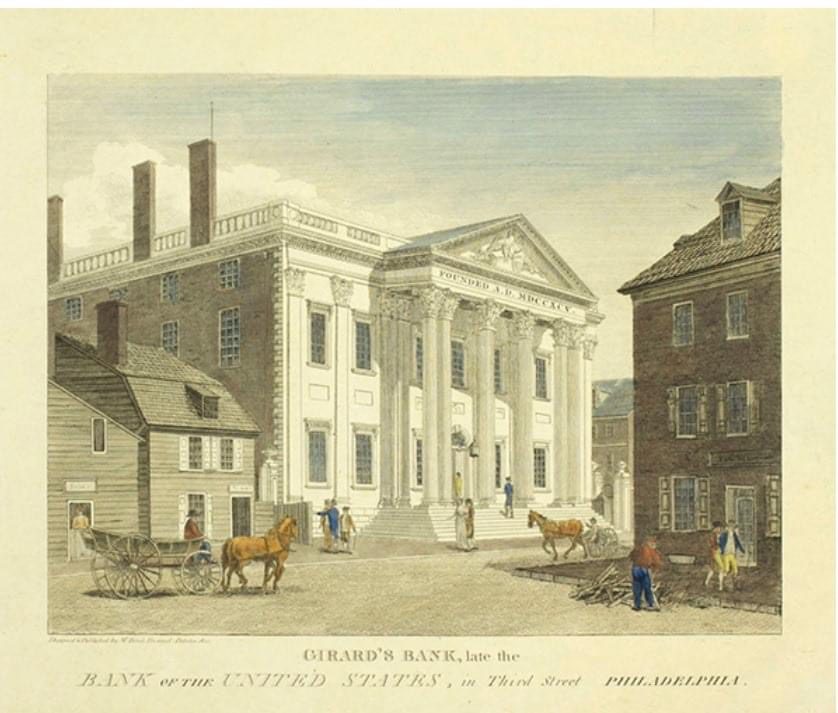 In Philadelphia, Pennsylvania on December 12, 1791, the (first) Bank of The United States was opened. Image via Wikimedia Commons, public domain