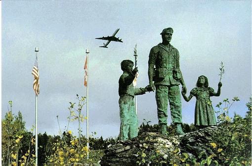 248 members of the 101st Airborne Division were tragically killed in the crash of a DC-8 aircraft at Gander, Newfoundland on December 12, 1985. The soldiers had been part of a peacekeeping force in the Sinai Peninsula and were en route to Fort Campbell, Kentucky. Shown is the “Silent Witness” memorial at Gander Lake. Image by ChrisNF, Wikimedia Commons, public domain.