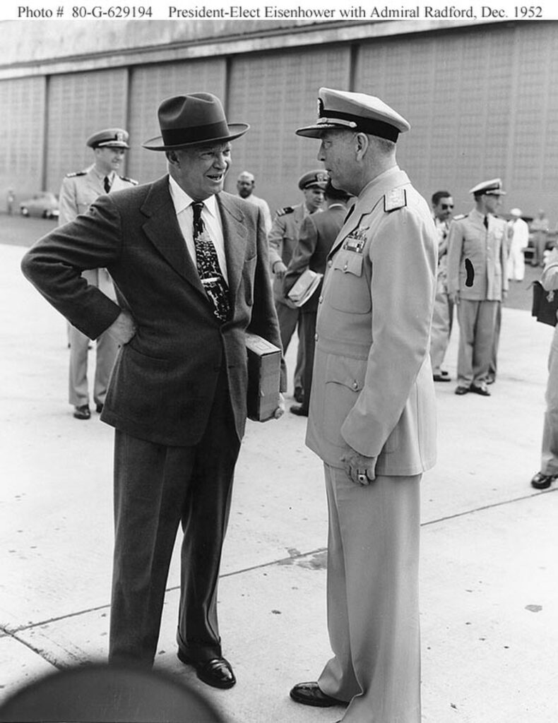 President-Elect Dwight D. Eisenhower with Admiral Arthur W. Radford, Commander of the U.S. Pacific Fleet, on December 13, 1952.