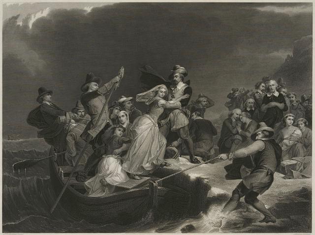 William Bradford and the Pilgrims of the ‘Mayflower’ are believed to have landed at Plymouth Rock on December 21, 1620.