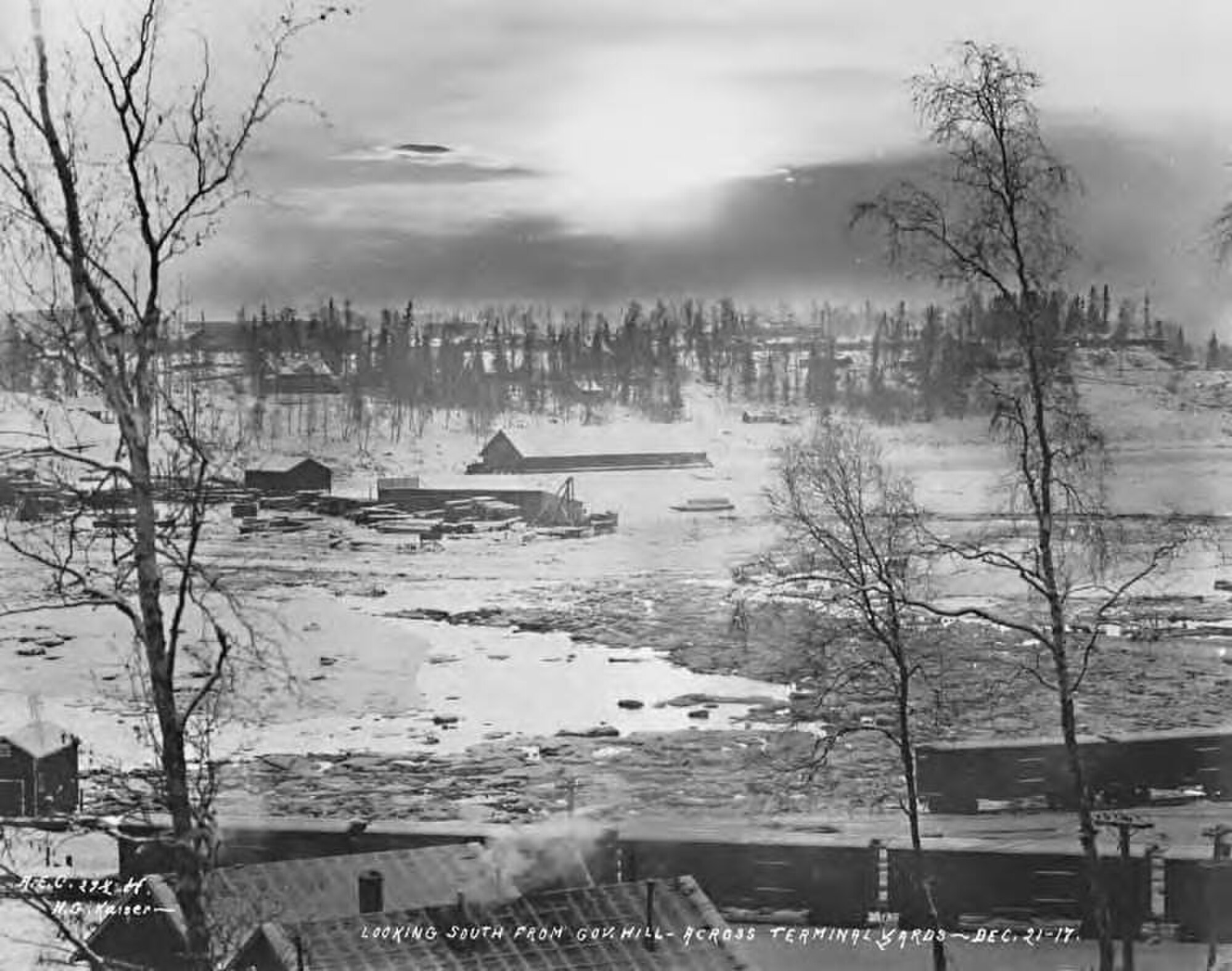 Looking across train yards from Government Hill, Anchorage, Alaska, December 21, 1917