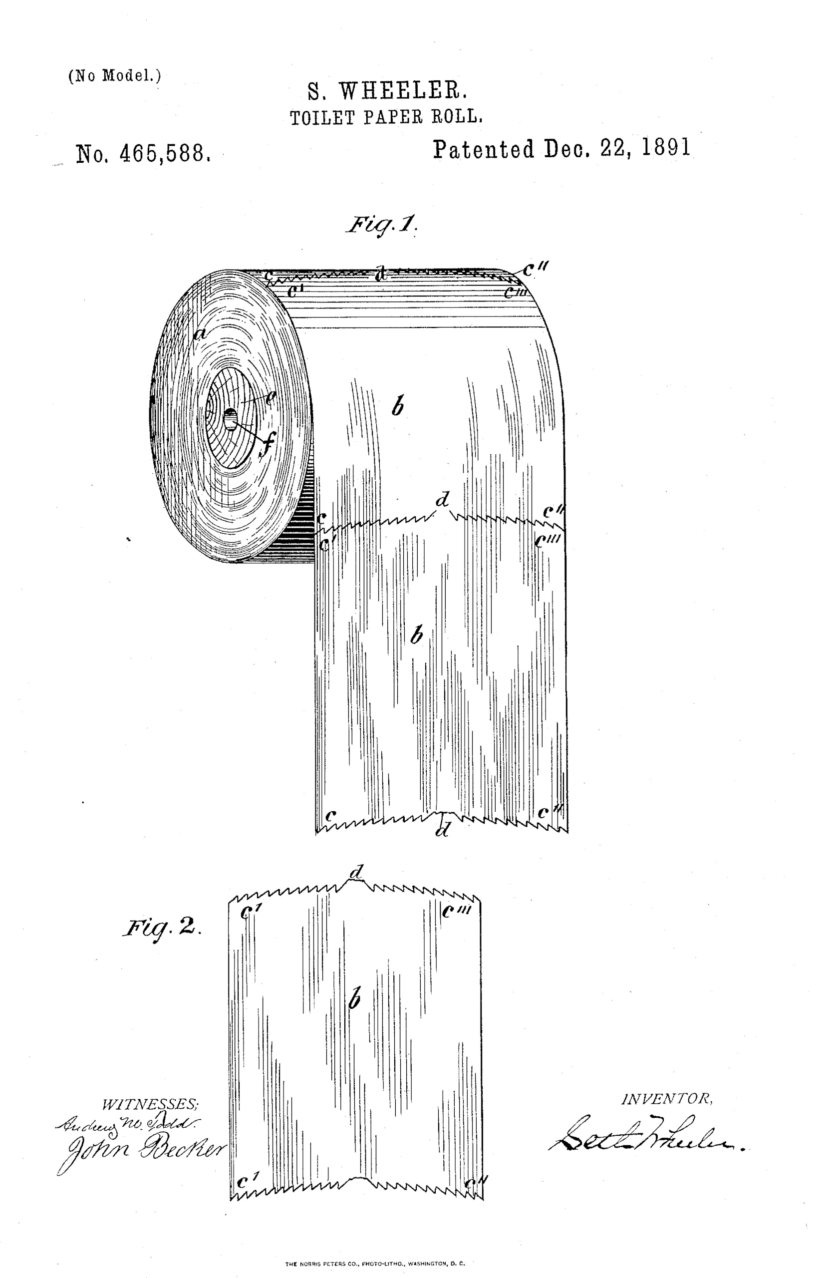 The original U.S. patent of the “Toilet Paper Roll” was issued to Seth Wheeler of Albany, New York on December 22, 1891.