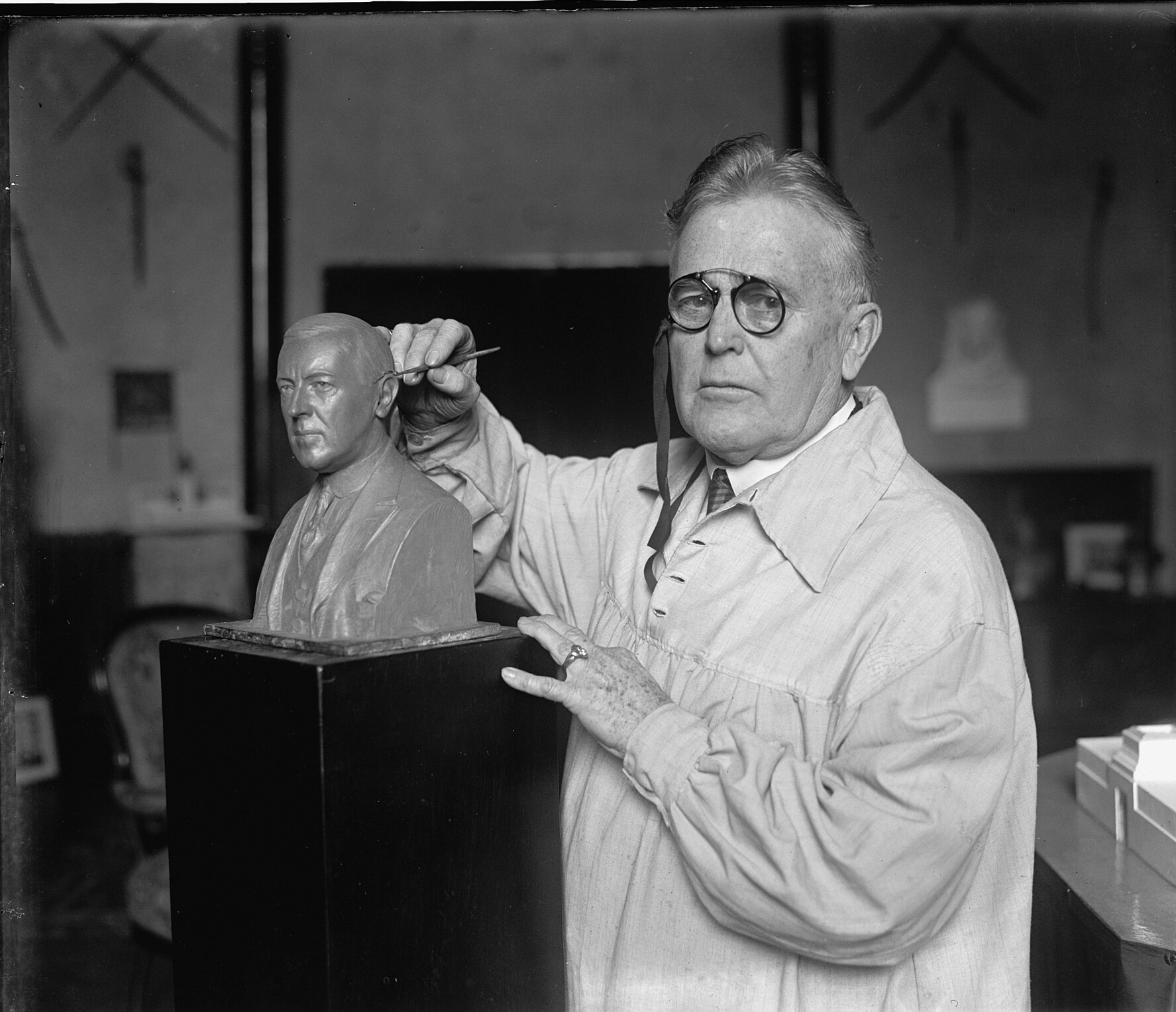 American sculptor William Clark Noble with a bust of Woodrow Wilson on December 22, 1924.
