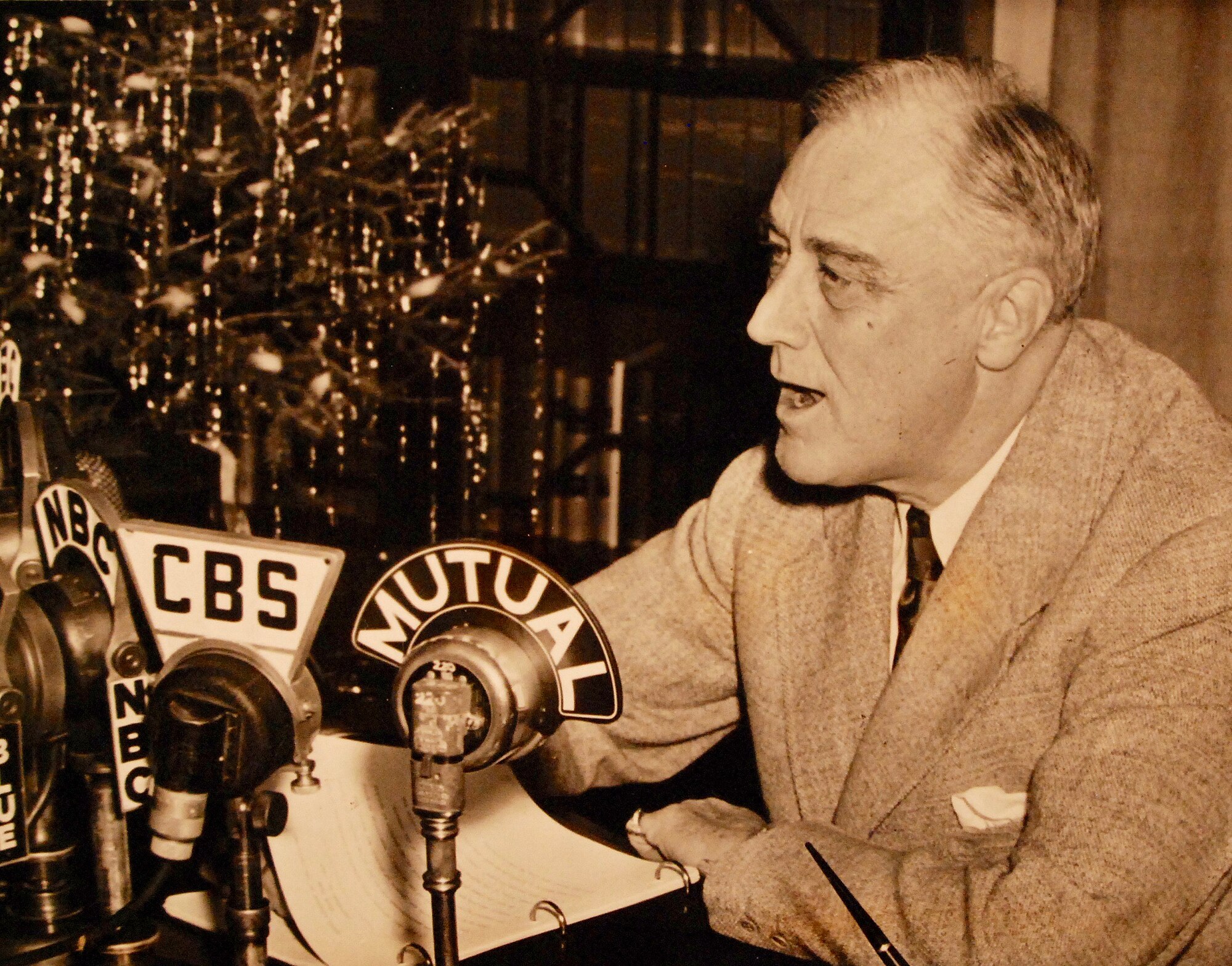 FDR during his Fireside chat when he announced that he met with other Allied leaders who agreed on every point concerned with the launching of a gigantic attack upon Germany. December 24, 1943 Image via Wikimedia Commons, public domain