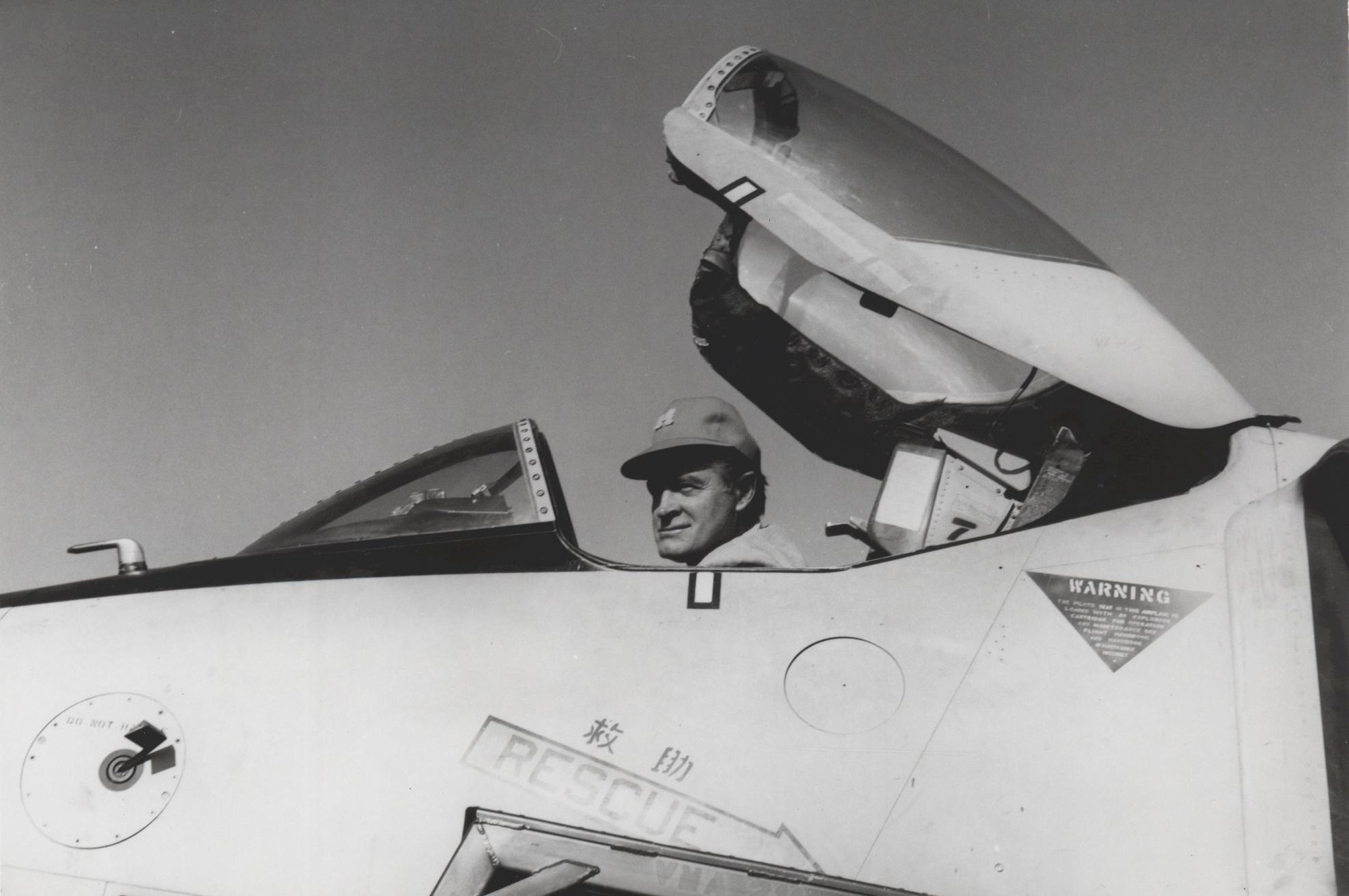 Bob Hope sits in an A-4E Skyhawk of Marine Attack Squadron 211 at Chu Lai following his Christmas show (official USMC photo by Sergeant W. P. Luke) Photo from USMC Archives via Wikimedia Commons, CC BY 2.0