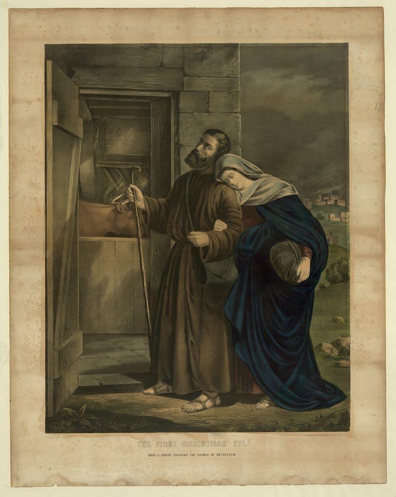 The first Christmas Eve, Mary & Joseph entering the stable of Bethlehem via Library of Congress, no known restrictions