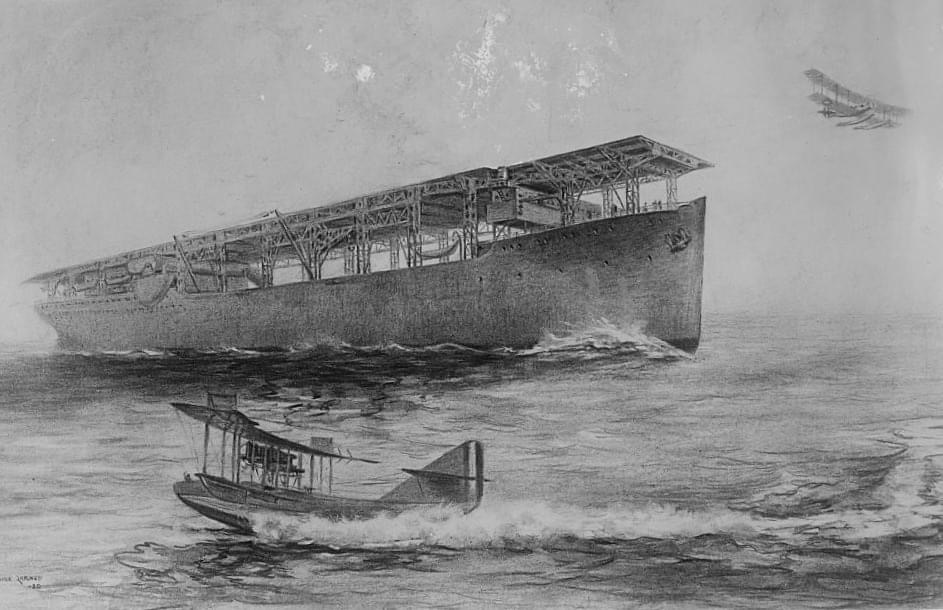 A drawing of the USS Langley, the U.S. Navy’s first aircraft carrier