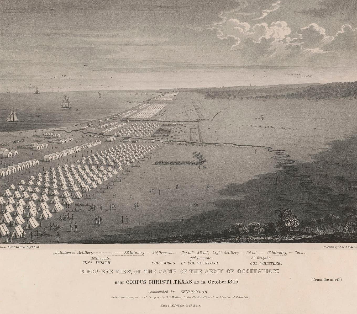 Birds-eye view, of the camp of the “army of occupation” near Corpus Christi, Texas in October 1845 commanded by General Taylor