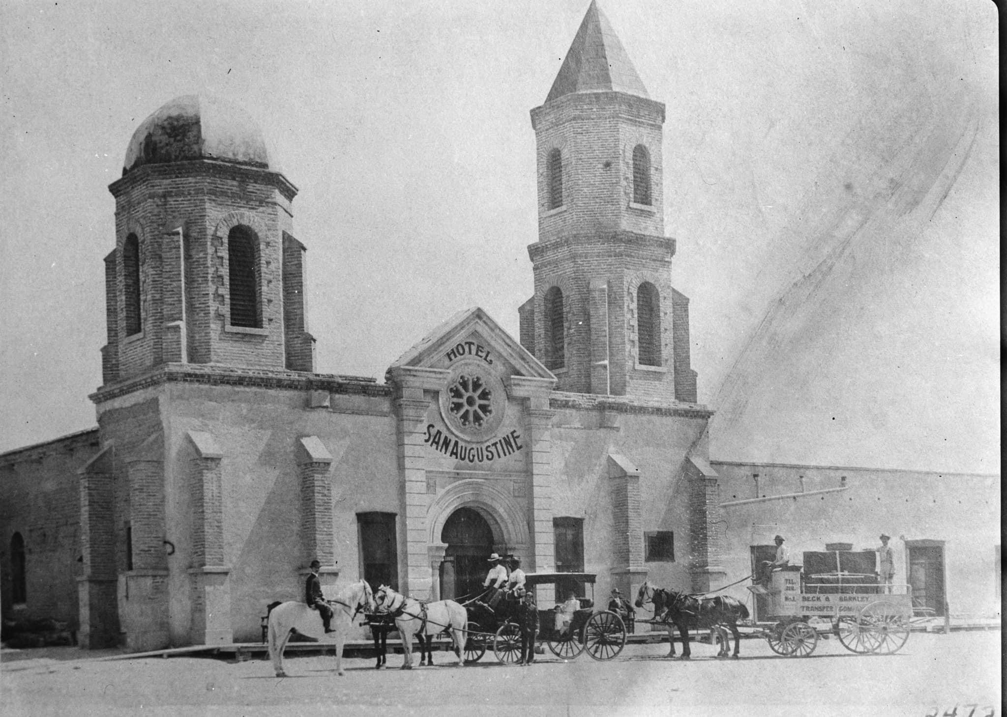 The second Church of San Augustine in Tucson, Arizona c. late 1800s after it became a hotel.
