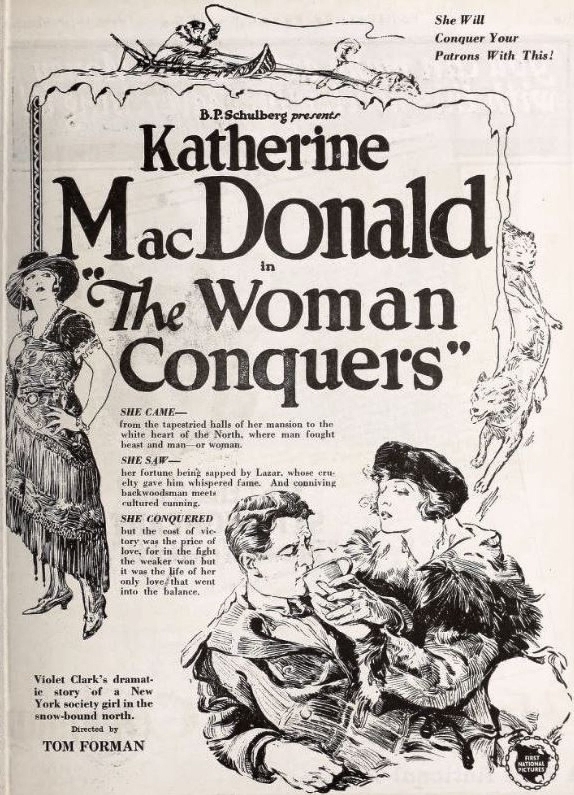 An advertisement for the American silent drama film The Woman Conquers that appeared in a publication on December 30, 1922.
