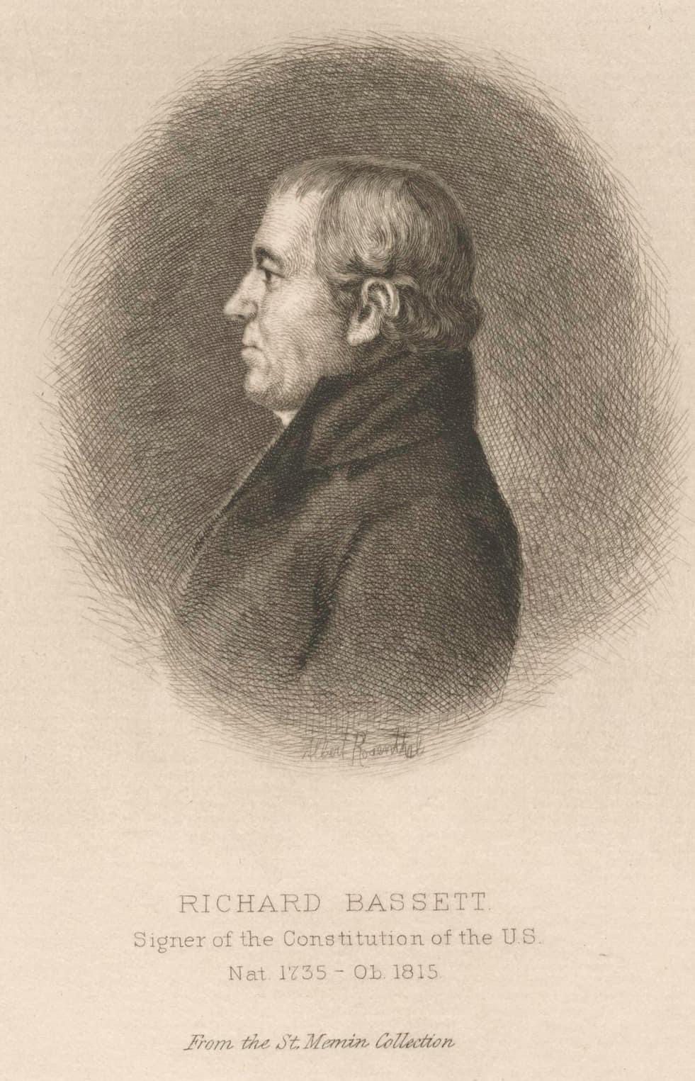 A sketch of Revolutionary War Veteran Richard Bassett who signed the United States Constitution and was a delegate at the Delaware Convention in 1787. On December 7, 1787 Delaware became the first state to ratify the U.S. Constitution.