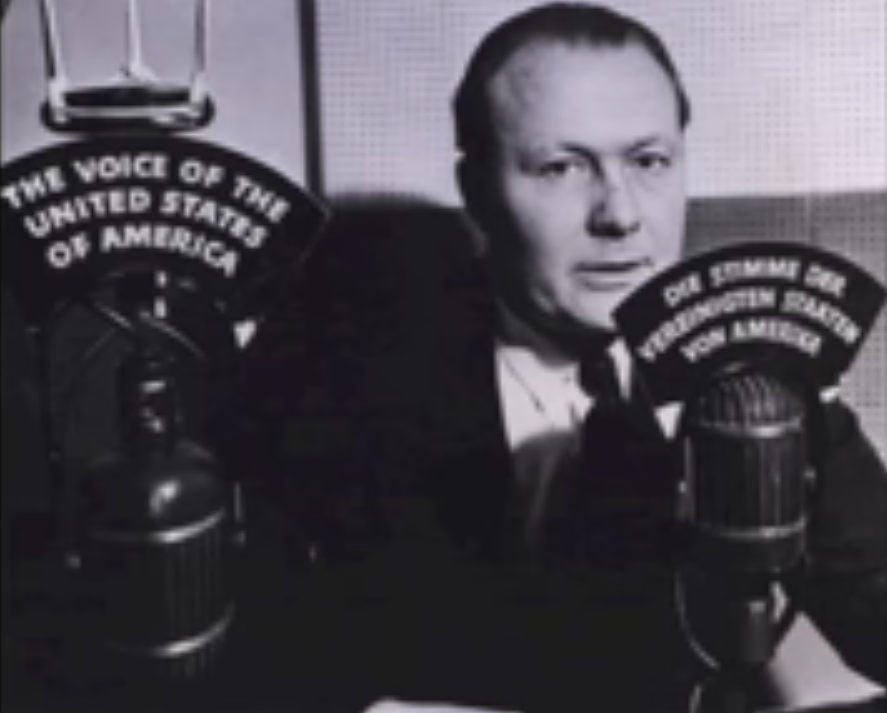 William Harlan Hale who delivered the first Voice of America radio broadcast on February 1, 1942. The short-wave broadcast was intended for the people of Germany and the content was aimed at countering Nazi propaganda.