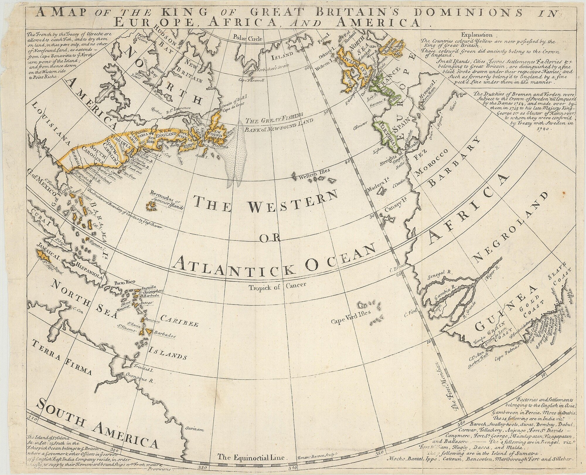 On February 10, 1763, the Treaty of Paris which ended the Seven Years War’ global conflict, which included the French & Indian War in present day United States, was signed in Paris. 184 years later on February 10, 1947, The Paris Peace Treaties were signed following the end of WWII. Image map Great Britain’s dominions c. 1740-1763 via Wikimedia Commons, public domain –>