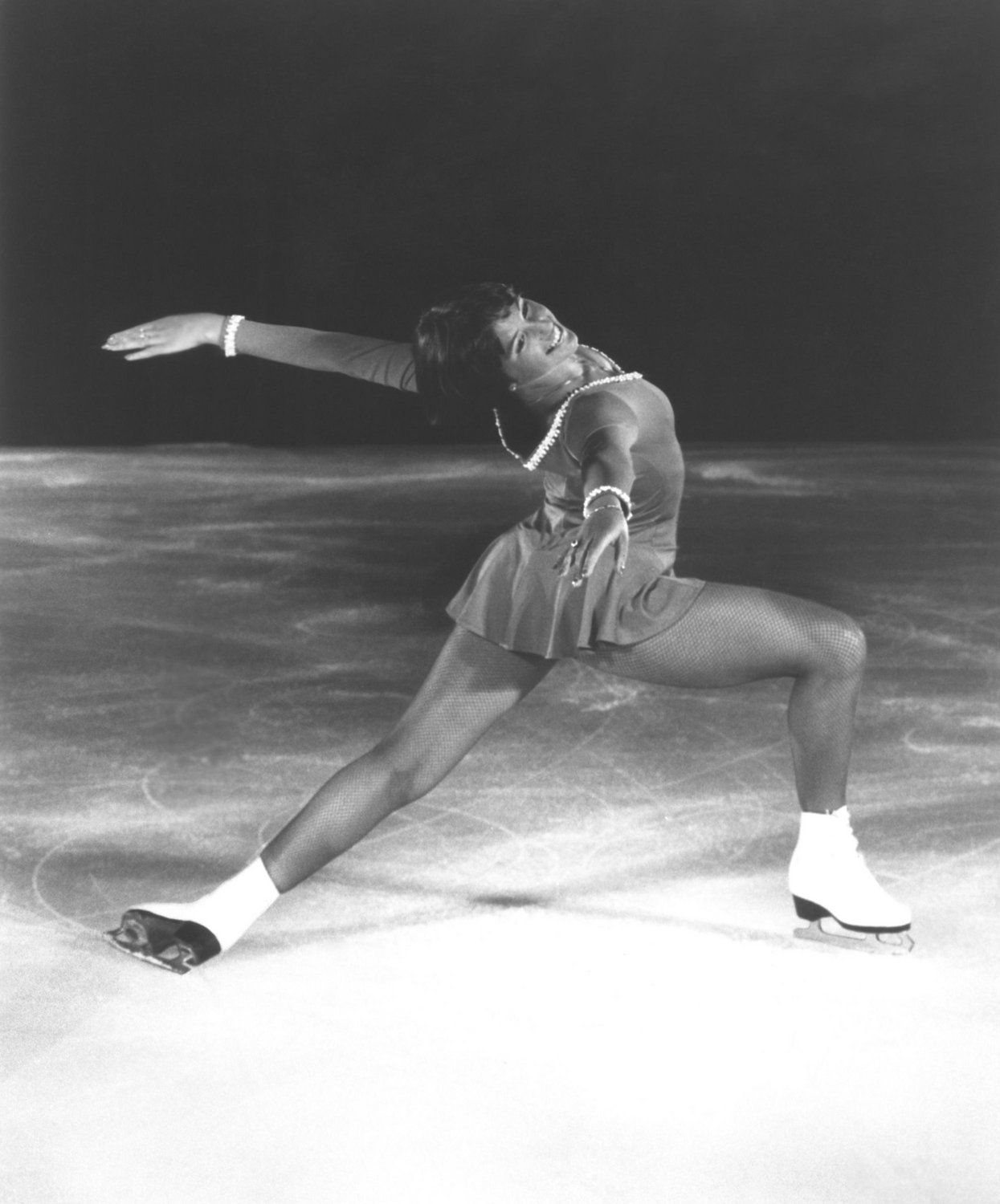 On February 13, 1976, American figure skater Dorothy Hamill won the gold medal at the Winter Olympic Games in Innsbruck, Austria. Image of Dorothy Hamill in Ice Capades in the late 70s/early 80s via Alamy –>
