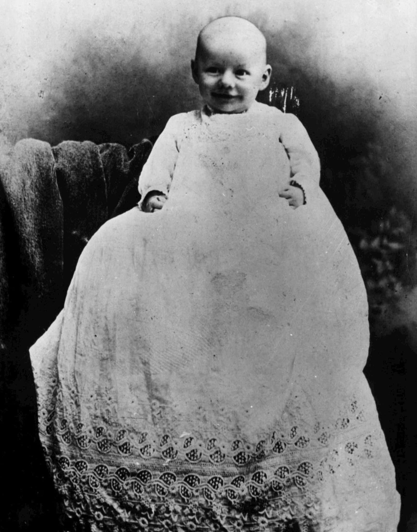 American comedian, actor, violinist and vaudevillian Jack Benny was born in Chicago on February 14, 1894. His real name was Benjamin Kubelsky. Image of Jack Benny as a baby via Wikimedia Commons, public domain –>