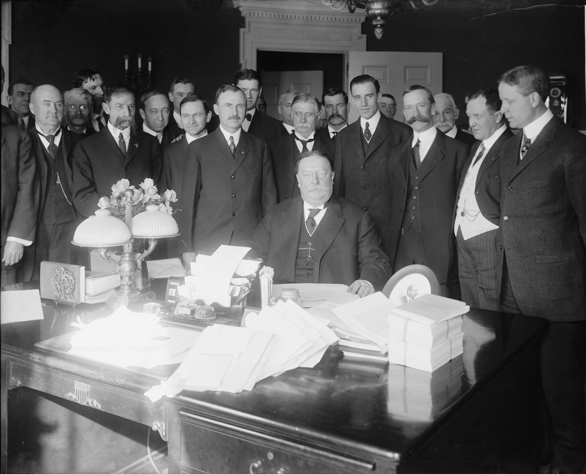 President Taft signing Arizona Statehood Bill. On February 14, 1912, Arizona became the 48th state. Image via Wikimedia Commons, no known restrictions –>