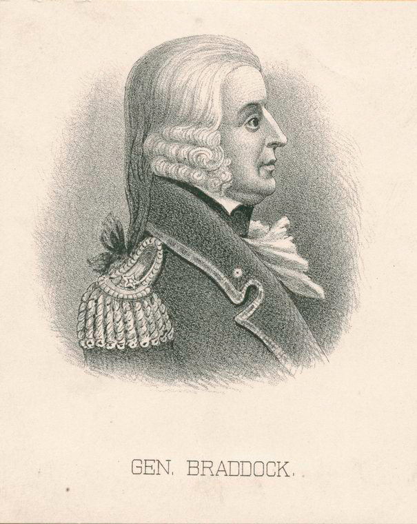 On February 20, 1755, British General Edward Braddock arrived in Hampton, Virginia to take command of British forces in Colonial America. Less than five months later he was fatally shot at the Battle of the Monongahela. Image via Wikimedia Commons, public domain –>