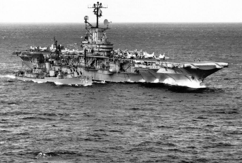 On February 20, 1942, Lt. Commander Edward “Butch” O’Hare, USN was credited with saving his ship, the USS Lexington, when he and his wingman attacked a flight of nine Japanese bombers. For his bravery and skill O’Hare was awarded the Medal of Honor. Chicago’s airport is named in his memory. Image: NHC via Wikimedia Commons, public domain –>