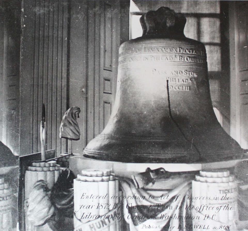 On today’s date February 23, 1846, The Liberty Bell was rung for the last time. The over one ton bell was rung on this day in honor of Washington’s Birthday and was never rung again after its fateful fracture became visible. Image: The Liberty Bell in Philadelphia in 1872 or earlier via Wikimedia Commons, public domain –>