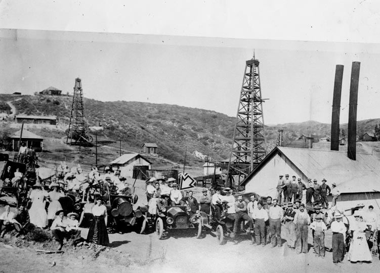 The city of Brea in Orange County, California was incorporated on February 23, 1917. Brea means “tar” in Spanish and the Brea-Olinda Oil Field was discovered there in 1880. Over 400 million barrels of oil have been produced since it was drilled. Hall of Fame baseball pitcher, Walter Johnson, worked in the nearby oil fields in his teens. Image via Wikimedia Commons, public domain –>