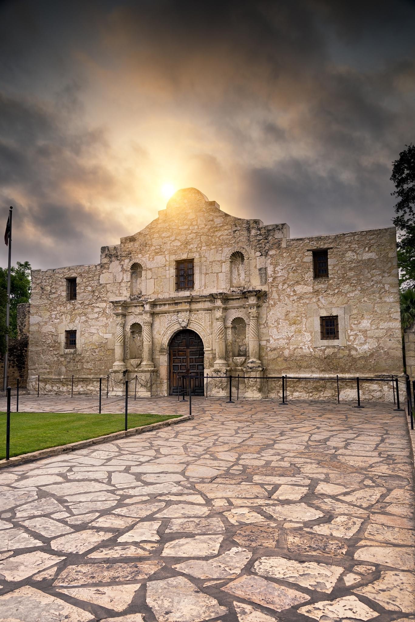 On February 23, 1836, the siege of the Alamo began in present day San Antonio, Texas. Image of the historic Alamo by Dean Fikar via Shutterstock –>