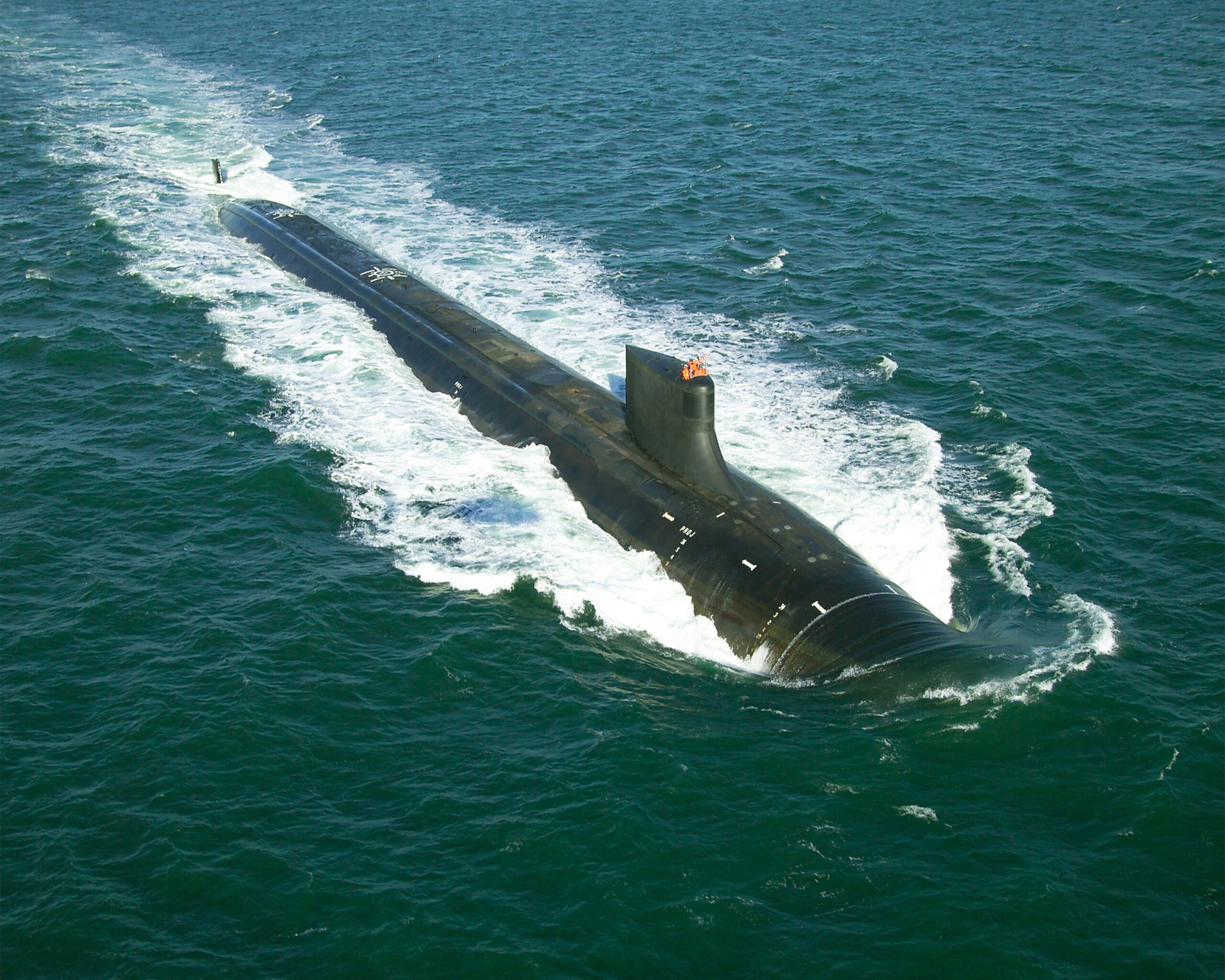 USS Jimmy Carter (SSN 23) during sea trials February 3, 2005 Image via Wikimedia Commons, public domain –>