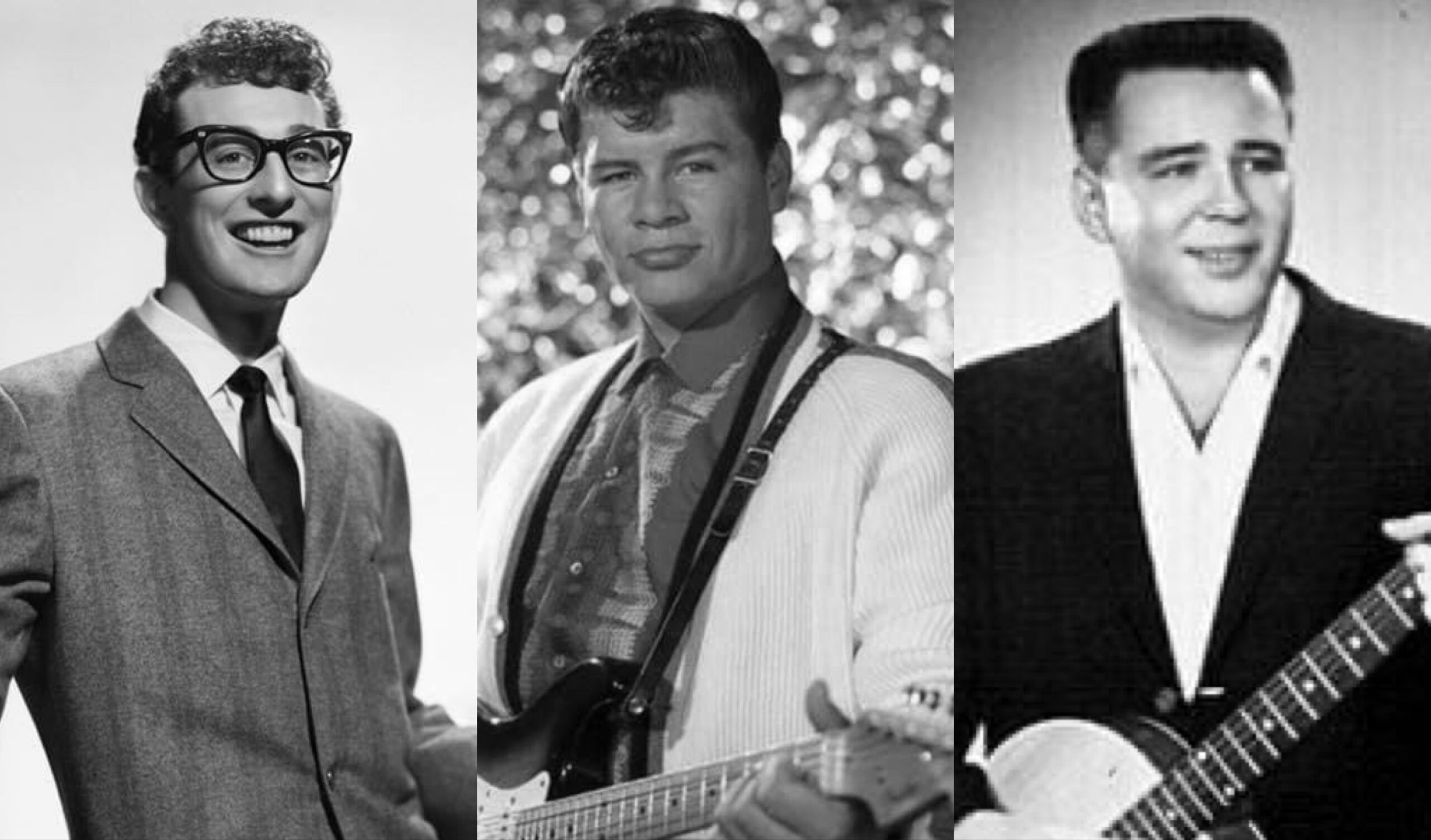 Music fans were shocked and saddened on February 3, 1959 when a plane crash near Mason City, Iowa took the lives of Buddy Holly, Ritchie Valens, and J.P. Richardson, the Big Bopper. The song “American Pie” called it “The Day the Music Died.” Images of Holly and Richardson via Wikimedia Commons Image of Valens via Alamy –>