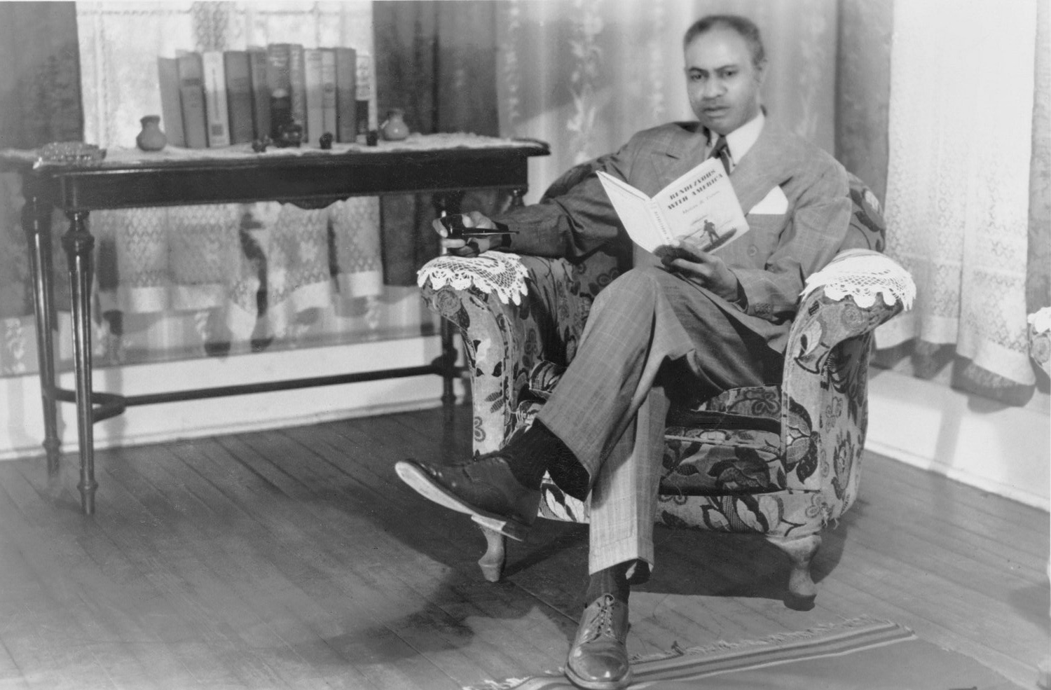 African American author and poet Melvin Beaunorus Tolson was born on February 6, 1898 in Moberly, Missouri. Here he is with a copy of his book, Rendezvous with America in 1946. Tolson was portrayed by Denzel Washington in the 2007 film, THE GREAT DEBATERS. Image via Alamy –>