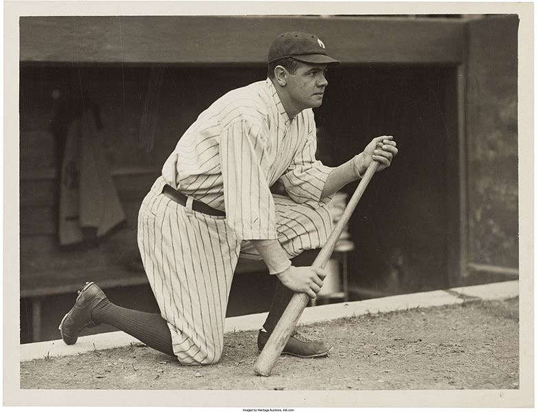 Baseball legend George Herman “Babe” Ruth was born in Baltimore, Maryland on February 6, 1895. He’s shown here in 1920 during his first of 15 seasons with the New York Yankees. Interestingly, the site of one of his father’s saloons is now center field at Camden Yards stadium, home of the Baltimore Orioles. Image via Wikimedia Commons, public domain in the US {PD-US} –>