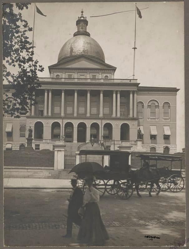 On February 6, 1788, Massachusetts became the sixth state to ratify the United States Constitution. Image: Massachusetts. Boston. State House c. 1900 via Digital Commonwealth Massachusetts, no known restrictions, CC BY-NC-ND –>