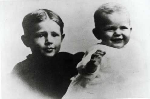 There have been other U.S. Presidents who have lived in the State of Illinois during portions of their lifetimes; however, Ronald Reagan was the only U.S. President to be born in the Prairie State. Ronald Reagan was born on today’s date, February 6, 1911 in Tampico, Illinois. Image: Ronald Reagan (right) with his older brother Neil in 1912 via Wikimedia Commons, public domain –>