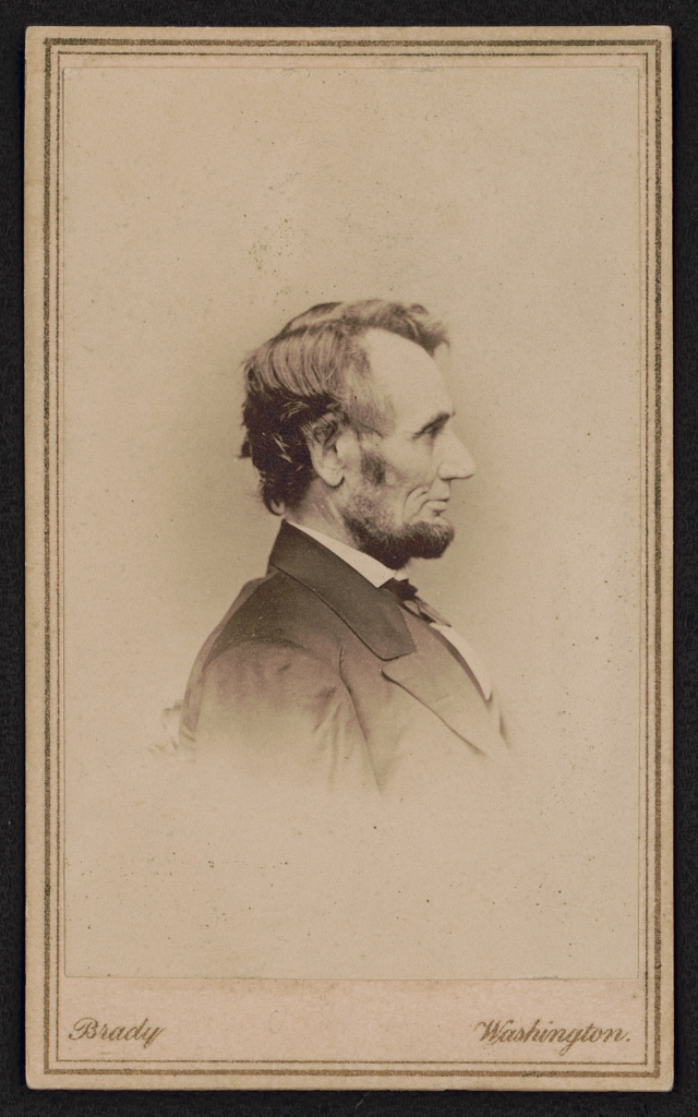 President Abraham Lincoln photographed by Anthony Berger at Mathew Brady’s studio on February 9, 1864 Image via LOC, no known restrictions –>
