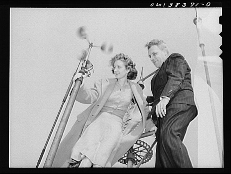 On February 9, 1870, the US Weather Bureau was established (National Weather Service since 1970). In this 1943 picture Bureau meteorologists at Washington, DC’s National airport check the anemometer to measure wind speed. The forecast likely included “wind gusts.” Image from LOC via Wikimedia Commons, public domain in the US. –>